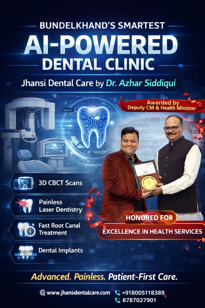 Discover why Jhansi Dental Care by Dr Azhar Siddiqui is the smartest AI-powered dental clinic in Bundelkhand. Advanced technology, painless treatments, and complete dental care under one roof.